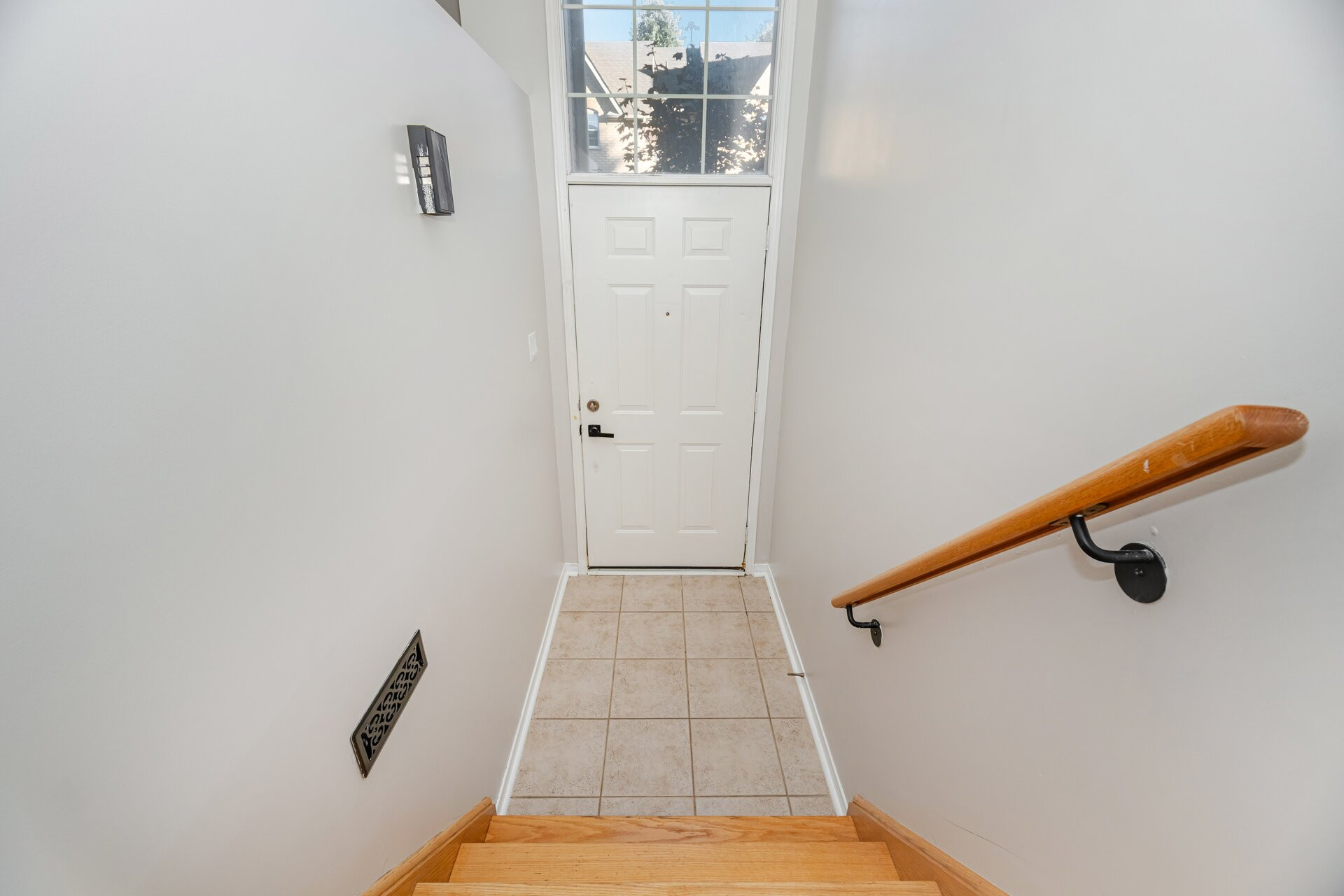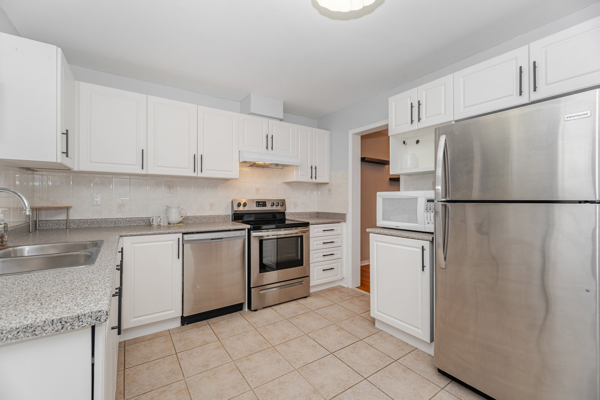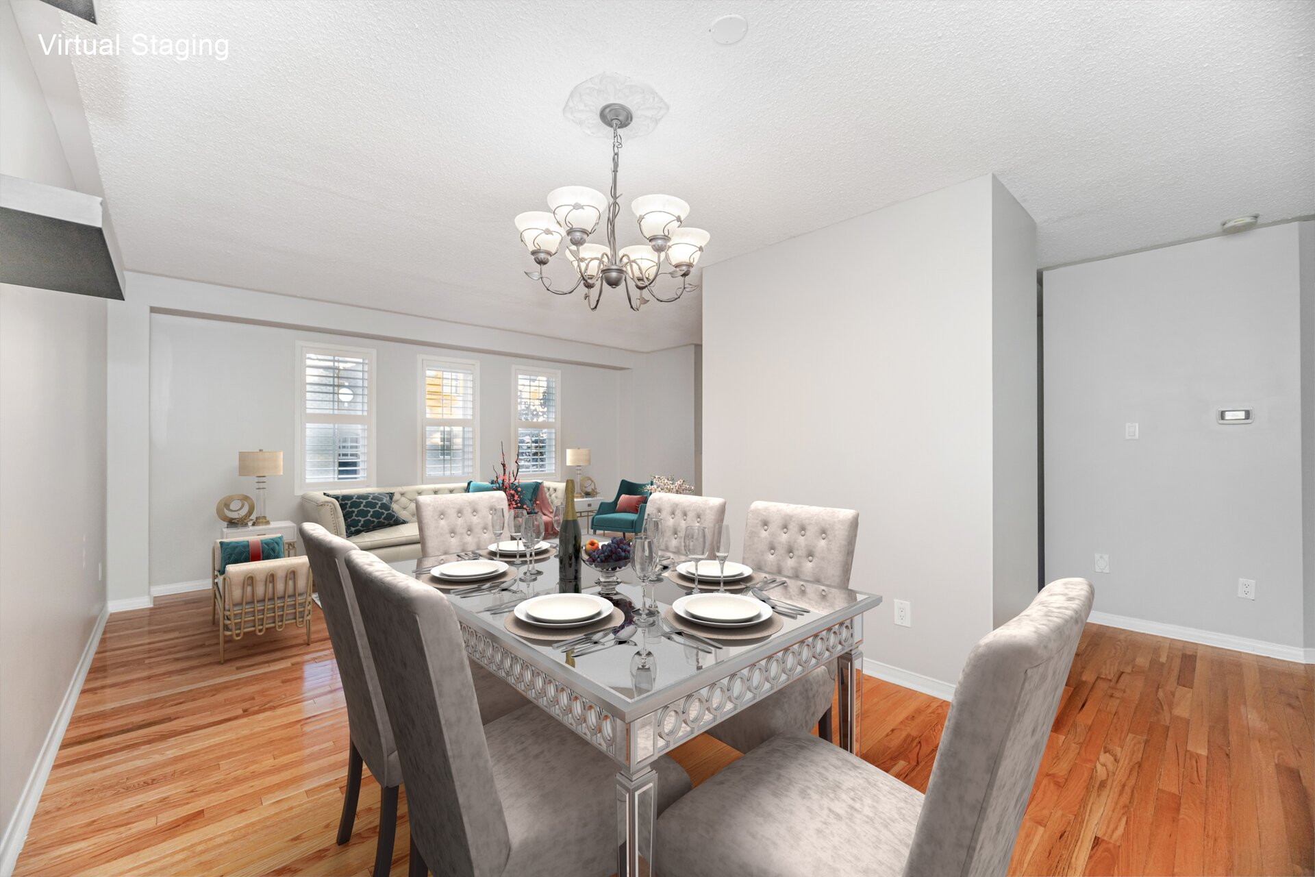 Nestled in the exclusive Harvest Landing enclave of just 24 townhomes, this rare 2 Bedroom, 3-bathroom executive townhome is a private oasis backing onto the lush ravine of South Fletcher's Creek. The bright, open-concept main floor includes a spacious living and dining area with a walk-out to the private deck, perfect for soaking in the beautiful ravine views. Main floor offers open concept living area with hardwood floors and large kitchen.